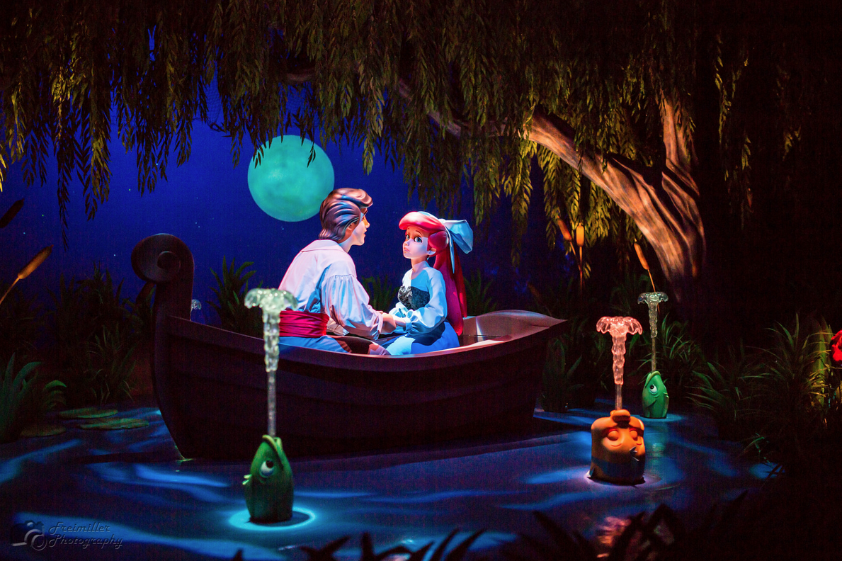 Ouvert en décembre 2012, ce dark-ride est en fait un clone d’une attraction ouverte un an plus tôt à Disney California Adventure. Il s’agit d’un dark-ride à l’ancienne : véhicules de type OmniMover à la Phantom Manor ; audio animatroniques rudimentaires à la It’s A Small World et plus complexes à la Pirates of the Caribbean, pour les personnages d’Ariel, Eureka et Ursulla. Ceux-ci sont dottés de mouvements plus vrais que nature, en particulier l’animation des cheveux d’Ariel dans l’eau. Les wagons-coquillages nous emmènent revisiter les scènes clé du film, ce qui avouons-le, n’est pas d’une créativité folle. L’exécution est très soignée mais je ne suis pas franchement fan de certains choix artistiques, comme la scène principale de l’attraction, tout en animatroniques aux mouvements extrêmement basiques. Et un climax un peu plus grandiose aurait été bienvenu pour la défaite d’Ursulla que de simples ombres chinoises.