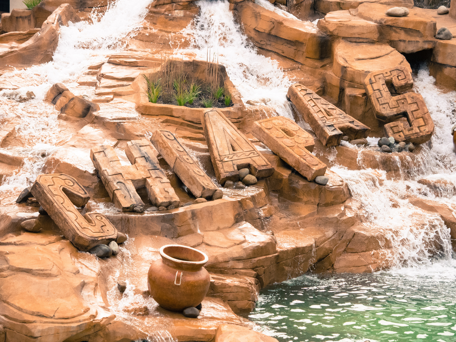 Pour construire Chiapas donc, Phantasialand a détruit l’ancien (double) flume ride Wildwasserbahn, ses rochers de fibre de verre et ses canaux bleu turquoise. Un parcours tout ce qu’il y a de plus classique qui ne cadrait plus vraiment avec les attractions souvent dotées de twists techniques orignaux qui font la singularité du parc depuis un peu plus d’une décennie maintenant. Ici, ce n’est pas seulement une attraction qui en remplace une autre, c’est aussi une zone toute entière du parc qui a été intégralement reconstruite, modifiant au passage le plan du parc de façon méconnaissable : falaise de rochers, lac, allées, végétation, cascades, restaurants, boutiques… Le tout dans un thème mexicain, vu et revu jusqu’à l’écoeurement dans les parcs certes, mais pour le coup, la thématisation est assez jolie donc on ne va pas se plaindre.