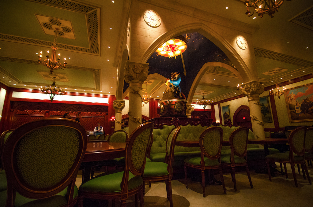 Be Our Guest mérite néanmoins que l’on s’y attarde, car comme la plupart des attractions du New Fantasyland, ce qui n’aurait pu être qu’un restaurant est ici une expérience intégrée : c’est un restaurant, mais c’est aussi un meet’n’greet et des décors à explorer. En effet, la Bête fait régulièrement une entrée annoncée dans le château et les visiteurs sont invités à venir la rencontrer, et dès votre arrivée, vos hôtes vous invitent chaleureusement à visiter les autres pièces du château pendant ou après votre repas.