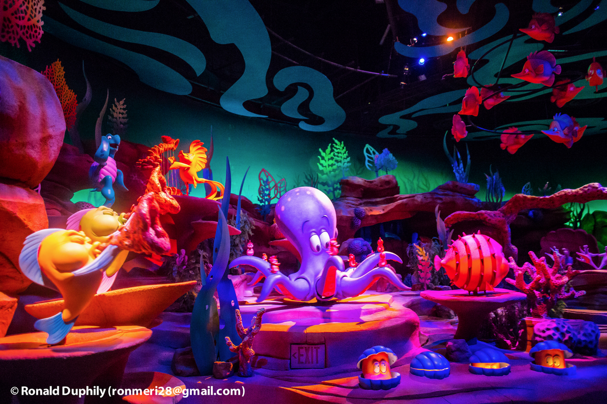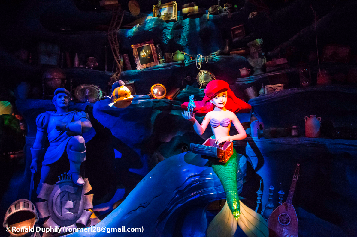 Ouvert en décembre 2012, ce dark-ride est en fait un clone d’une attraction ouverte un an plus tôt à Disney California Adventure. Il s’agit d’un dark-ride à l’ancienne : véhicules de type OmniMover à la Phantom Manor ; audio animatroniques rudimentaires à la It’s A Small World et plus complexes à la Pirates of the Caribbean, pour les personnages d’Ariel, Eureka et Ursulla. Ceux-ci sont dottés de mouvements plus vrais que nature, en particulier l’animation des cheveux d’Ariel dans l’eau. Les wagons-coquillages nous emmènent revisiter les scènes clé du film, ce qui avouons-le, n’est pas d’une créativité folle. L’exécution est très soignée mais je ne suis pas franchement fan de certains choix artistiques, comme la scène principale de l’attraction, tout en animatroniques aux mouvements extrêmement basiques. Et un climax un peu plus grandiose aurait été bienvenu pour la défaite d’Ursulla que de simples ombres chinoises.