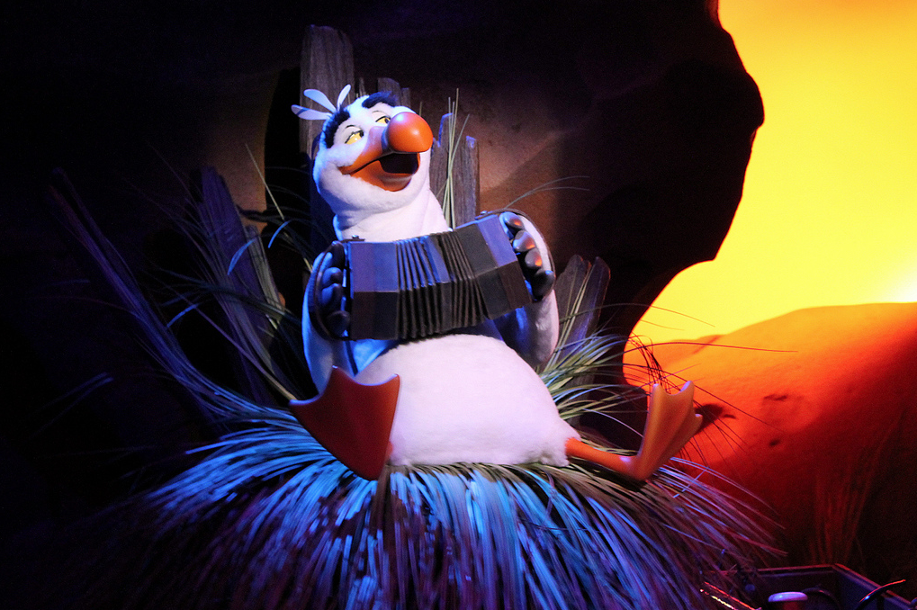 La trouvaille la plus novatrice de l’attraction se trouve justement dans la file d’attente. Un jeu interactif permet aux visiteurs de faire passer le temps en aidant de petits crabes animés à ranger les affaires et autres tire-babas glanés par Ariel au cours de ses voyages. Remarquablement intégré dans les décors, ce jeu est est aussi très sympathique sur le plan technique : il suffit de pointer du doigt les objets qui ne correspondent pas à ceux disposés sous vos yeux. Simple, efficace, intelligemment pensé et brillamment exécuté. Ajoutez à cela un animatronique d’Eurêka encore plus cute qu’une portée de chatons et le Magic Kingdom tient ici sa file d’attente la plus sexy et contemporaine. Maintenant, c’est un peu dommage que l’intérêt principal de cette attraction dans soit dans la file et pas dans l’attraction.