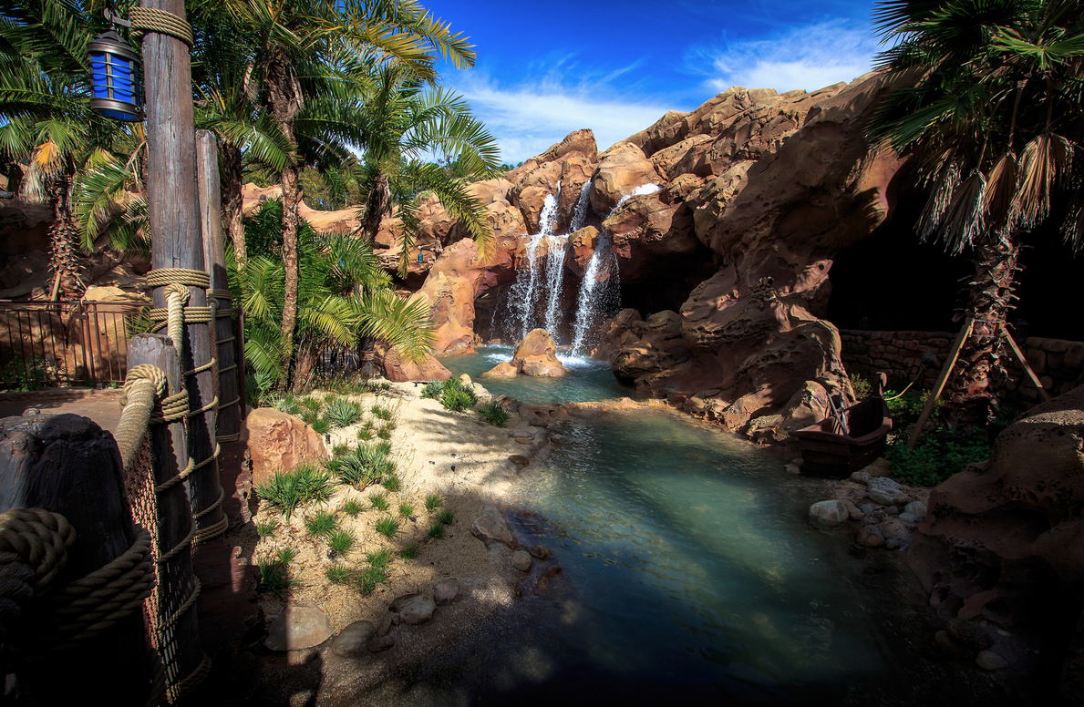 Le niveau est donc inégal et dans son ensemble, l’attraction m’a laissé de marbre. Journey of the Little Mermaid est un peu trop classique à mon goût et ne propose rien de réellement neuf. Par contre, la file d’attente m’a tapé dans l’oeil. Rochers, galeries, cascades d’eau, sable et végétation matérialisent magnifiquement l’univers du dessin animé : un exercice difficile auquel beaucoup de parcs échouent. Ici, l’immersion est naturelle et riche en détails, comme ces véritables coquillages incrustés dans la roche et le sol.